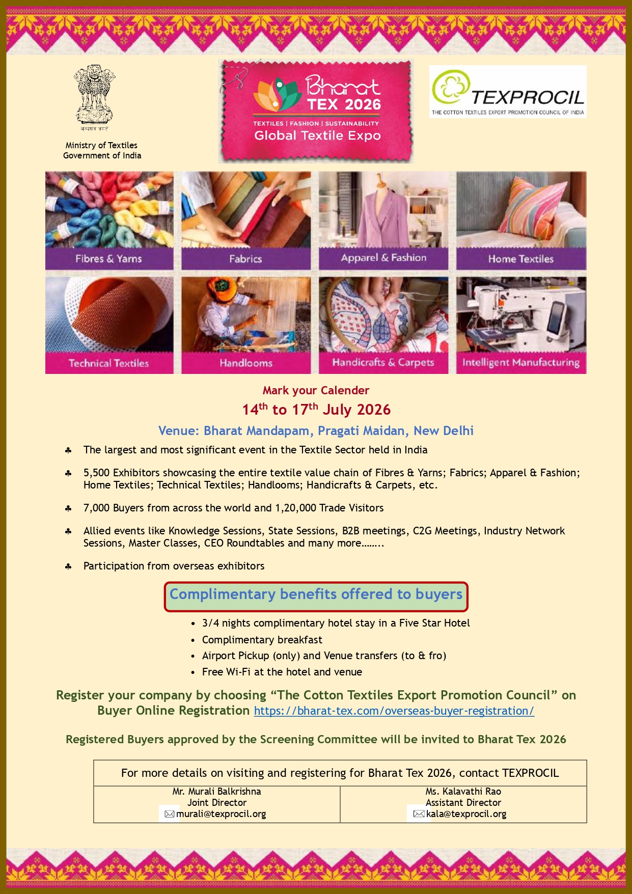 Bharat Tex-2026 from 14 to 17 July 2026 at Bharat Mandapam Pragati Maidan New Delhi